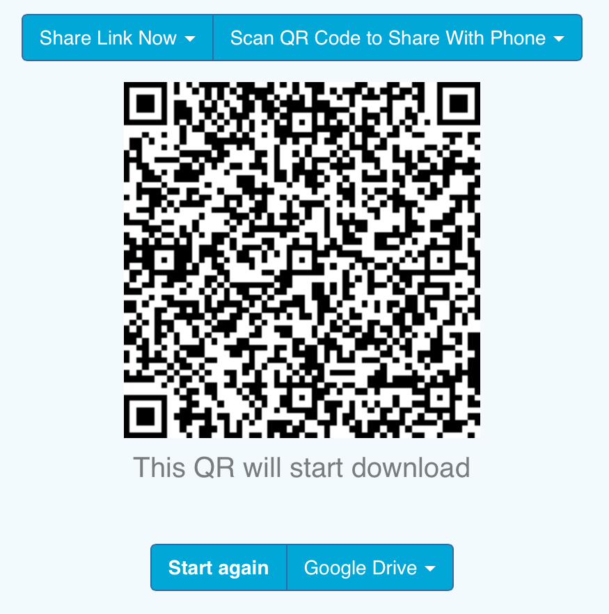 Once you upload a new document, it is automatically to encrypted onto your own cloud drive (Google Drive). The document can then be shared through a secure link to friends or colleagues or simply between your own devices. Your browser will generate a QR code for each document.